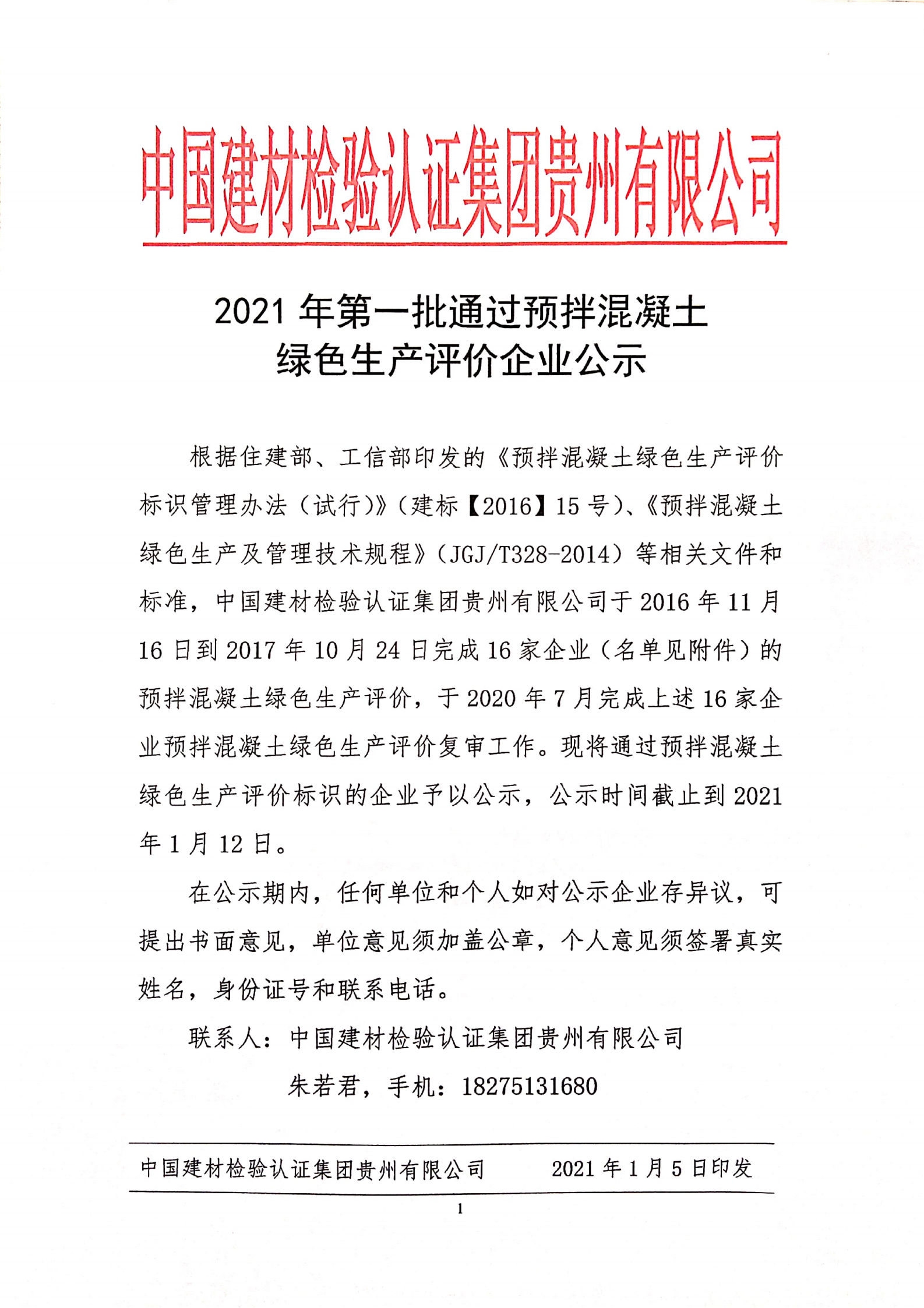2021年第一批通過預拌混凝土綠色生產評價企業公示