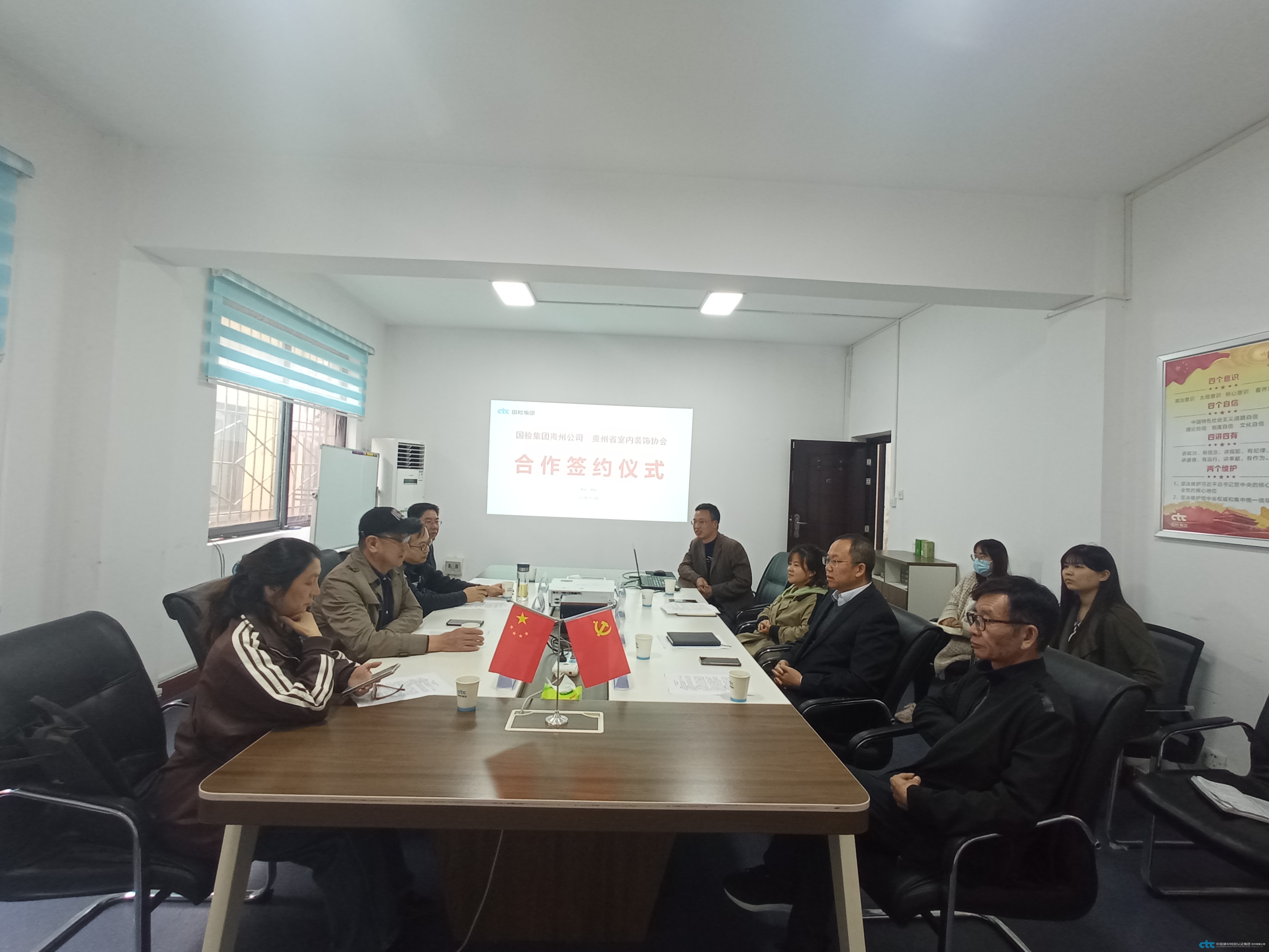 2022年5月18日下午 ,國檢集團貴州公司與貴州省室內(nèi)裝飾協(xié)會戰(zhàn)略合作協(xié)議簽約儀式在貴州公司會議室舉行。貴州省室內(nèi)裝飾協(xié)會會長張實踐、國檢集團貴州公司副總經(jīng)理李繼超分別代表雙方簽署戰(zhàn)略合作協(xié)議,該協(xié)議的簽署,為雙方發(fā)揮各自的行業(yè)資源優(yōu)勢和技術平臺優(yōu)勢,共同推動貴州省裝飾行業(yè)安全、環(huán)保、綠色、低碳高質(zhì)量發(fā)展奠定良好的合作基礎。