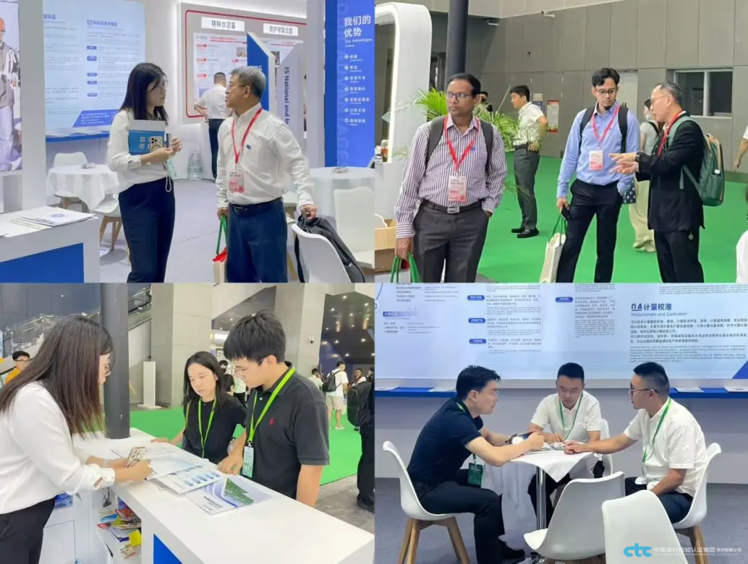 展會現場,國檢集團重點展示了混凝土領域檢驗檢測、認證評價、檢測儀器及智能制造、計量校準、科研及技術服務等領域的一站式整體解決方案,吸引了眾多參觀者的駐足咨詢。