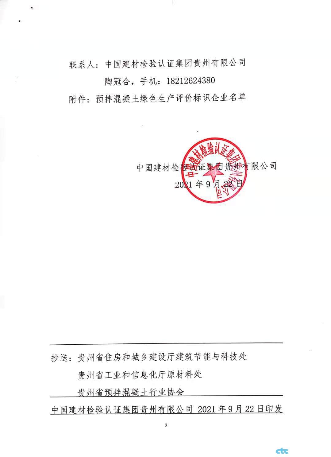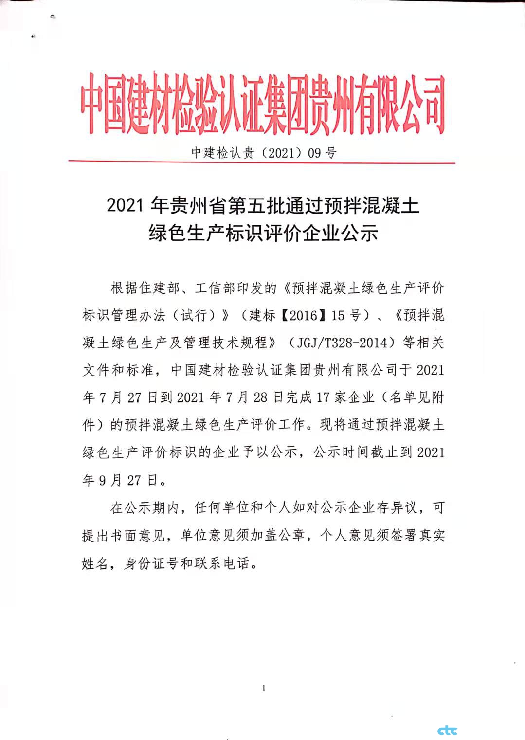 2021年貴州省第五批通過預(yù)拌混凝土綠色生產(chǎn)標(biāo)識評價(jià)企業(yè)公示