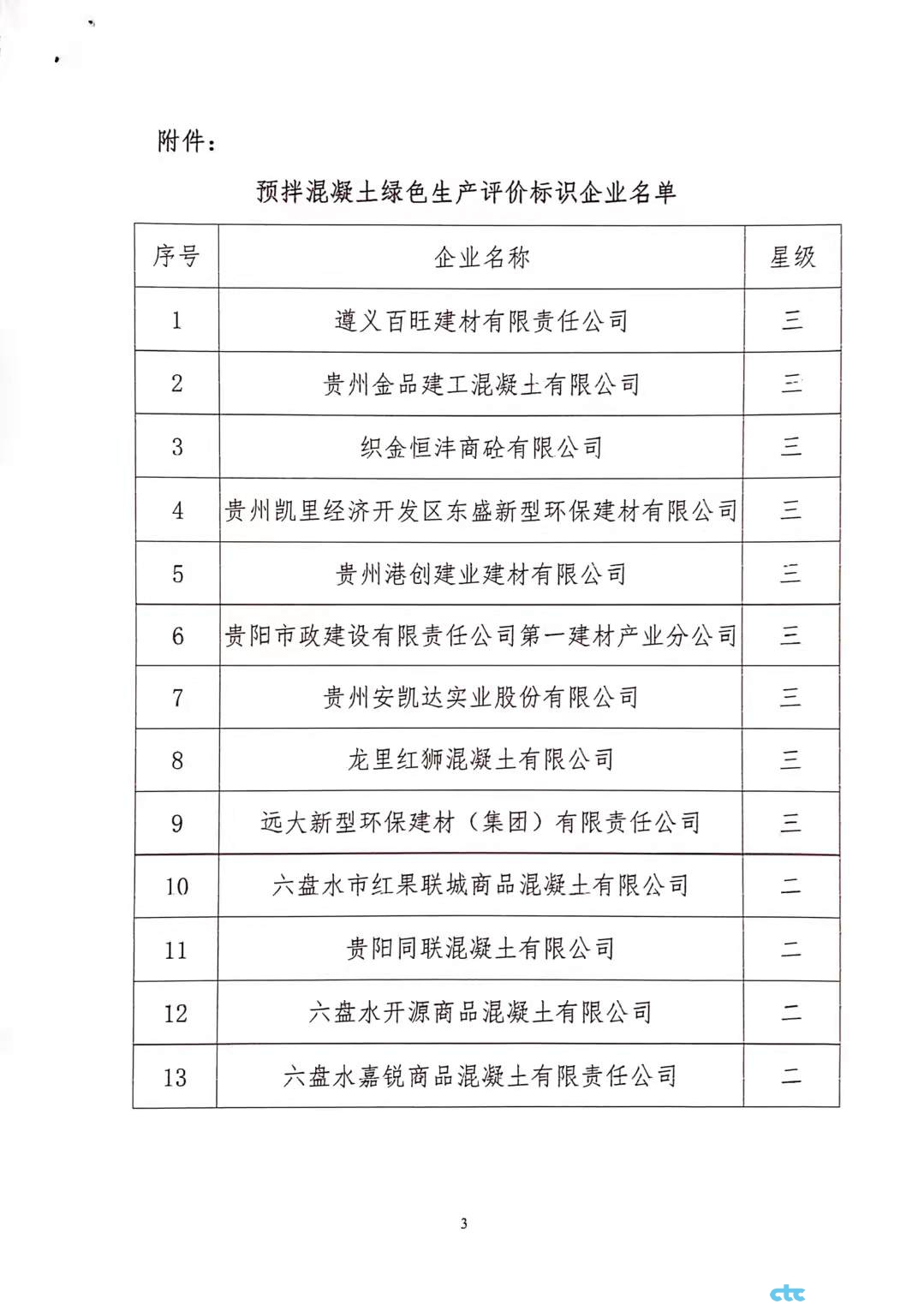 2022年貴州省第六批通過預(yù)拌混凝土綠色生產(chǎn)標(biāo)識評價(jià)企業(yè)公示